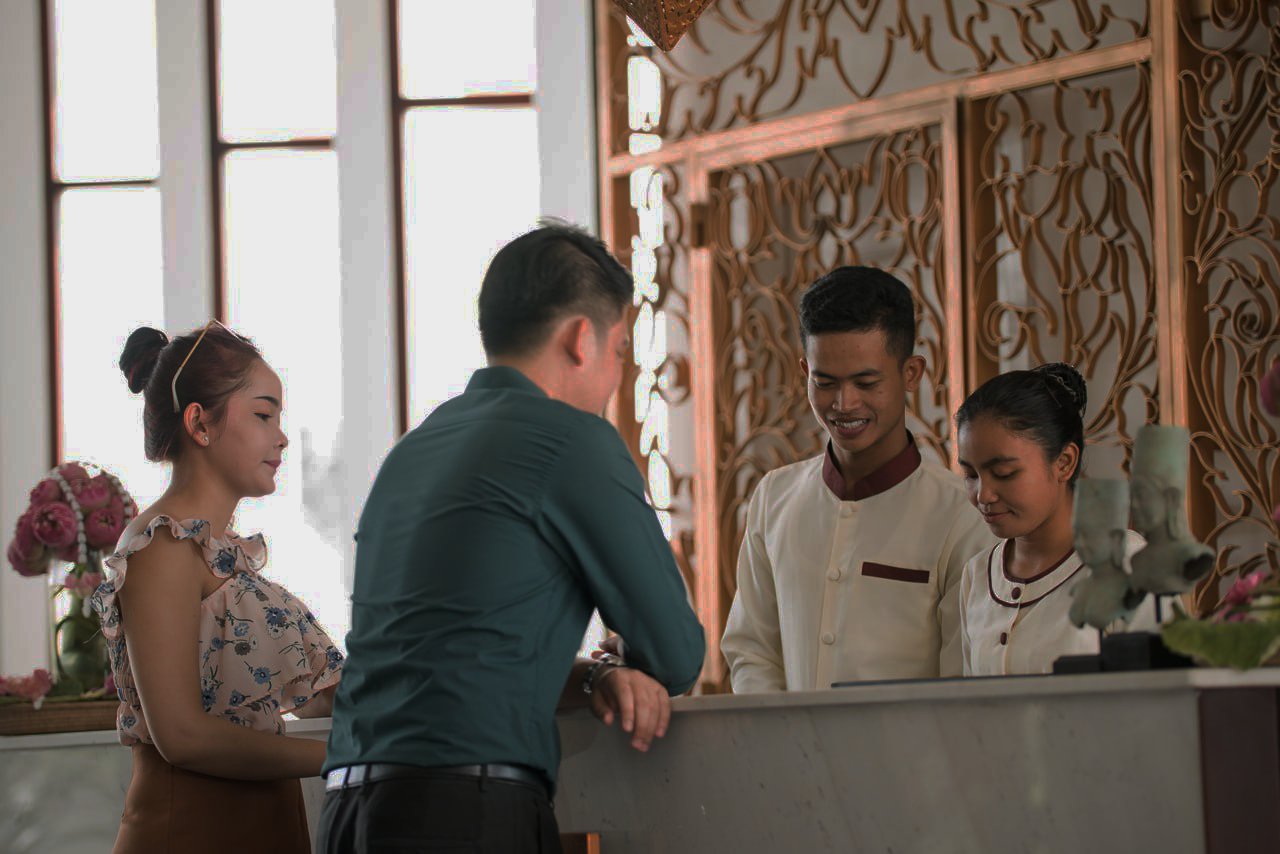 Cambodia’s main geographical features are the low lying Central Plain that includes the Tonlé Sap basin, the lower Mekong River flood-plains and the Bassac River plain surrounded by mountain ranges to the north, east, in the south-west and south. The central lowlands extend into Vietnam to the south-east. The south and south-west of the country constitute a 443 km (275 mi) long coast at the Gulf of Thailand, characterized by sizable mangrove marshes, peninsulas, sandy beaches and headlands and bays. Cambodia’s territorial waters account for over 50 islands. The highest peak is Phnom Aural, sitting 1,810 meters, (5,938 ft) above sea level.